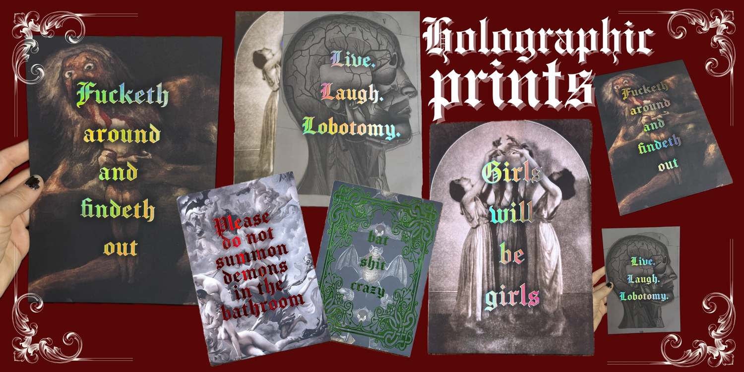 Bedding, Cushion covers, Tapestries, Drink Bottles and a whole bunch of other spooky and cute treats to adorn your crypt!